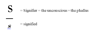 The above image is Lacan’s topography of the unconscious (Lacan 2002, p.141). Note the similarity with Saussure’s, to whom Lacan attributes it. However, Lacan demonstrates the importance of the signifier by reversing the hierarchy here in his own algorithm. The signifier, the unconscious, cannot be a true representation of the signified, because no direct exchange exists.